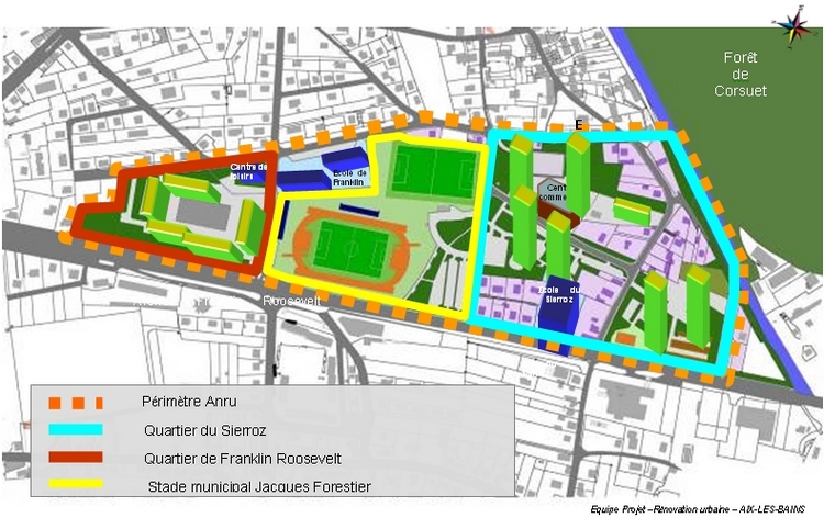1/ Retrouver la dimension urbaine d’Aix-les-Bains sur les quartiers « Sierroz-Franklin », notamment en terme de gabarit d’immeuble, de mixité sociale et de lien avec les autres quartiers ; désenclavement, changement d’image.